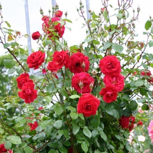 Очень надёжная плетистая роза насыщенно-красного цвета, не выгорающего на солнце. Цветки махровые, до 35 лепестков, собраны в соцветия. Аромат мягкий. Кусты энергичного роста, хорошо разветвлённые. Листва тёмно- зелёная, глянцевая; молодая - с антоциановыми тонами; довольно устойчивая к болезням. При благоприятных условиях куст очень быстро достигает трёх, а в тёплом климате - трёх с половиной метров в высоту.